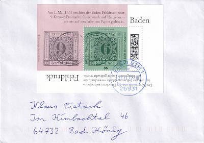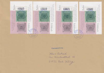 Inlandsbrief (1-20 g) vom 22.11.2022 (11. Periode) frankiert mit einem Block a 85 Cent (=85 Cent) |