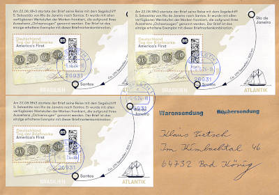Auslandsbrief (21-50 g) vom 19.04.2024 (11. Periode) frankiert mit 2 Blocks a 85 Cent (=1,70 €) |