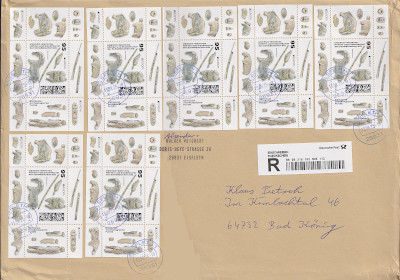 Inlandsbrief mit Übergabe-Einschreiben (1-20 g) vom 28.09.2025 (12. Periode) frankiert mit 2 Blocks a 1,80 € (=3,60 €, 0,95 Brief 2,65 Übergabe-Einschreiben) |