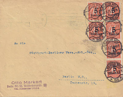 Ortsbrief (1-20 g) vom 18.09.1923 (17. Periode) frankiert mit 6 Marken a 5 000 Mark auf 40 Pfennig (=30 000 Mark)