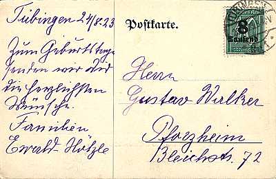 Inlandspostkarte vom 25.08.1923 (16. Periode) frankiert mit einer Marke a 8 000 Mark auf 30 Pfennig (=8 000 Mark)
