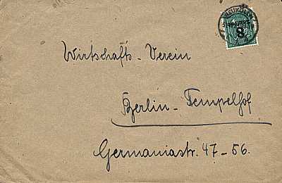 Ortsbrief (1-20 g) vom 31.08.1923 (16. Periode) frankiert mit einer Marke a 8 000 Mark auf 30 Pfennig (=8 000 Mark)