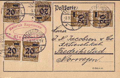 Inlandsbrief (1-20 g) vom 24.08.1923 (16. Periode) frankiert mit einer Marke a 20 000 Mark auf 25 Mark (=20 000 Mark) |