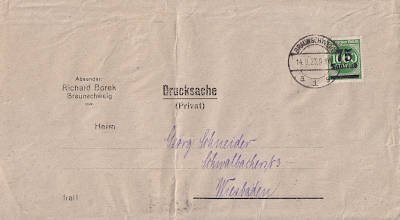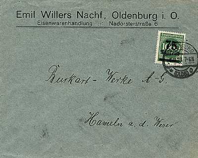 Inlandsbrief (1-20 g) vom 05.09.1923 (17. Periode) frankiert mit einer Marke (Walzen- druck) a 75 000 Mark auf 1 000 Mark (=75 000 Mark) |
