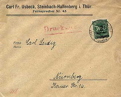 Inlandsdrucksache (1-25 g) vom 27.10.1923 (21. Periode) frankiert mit einer Marke a 2 Millionen Mark auf 300 Mark (=2 Millionen Mark) |