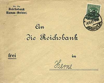 Inlandsbrief (1-20 g) vom 06.10.1923 (19. Periode) frankiert mit einer Marke a 2 Millionen Mark auf 300 Mark (=2 Millionen Mark) |