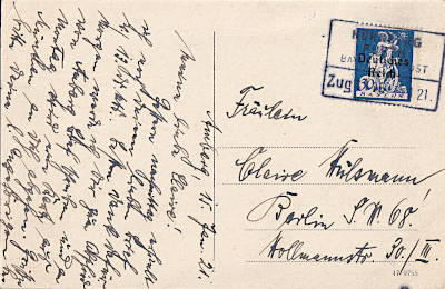 Inlandspostkarte vom 15.01.1921 (5. Periode) frankiert mit einer Marke a 30 Pfennig(=30 Pfennig)