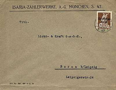 Inlandsbrief (1-20 g) vom 06.07.1920 (5. Periode) frankiert mit einer Marke a 40 Pfennig (=40 Pfennig)