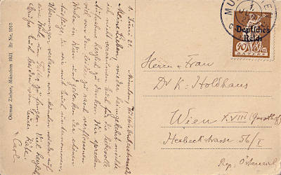 Auslandspostkarte vom 01.06.1921 (6. Periode) frankiert mit einer Marke a 40 Pfennig (=40 Pfennig); nach Österreich galt der Inlandstarif