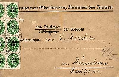 Ortsbrief (1-20 g) vom 25.10.1922 (9. Periode) frankiert mit 40 Marken a 5 Pfennig (=2 Mark)