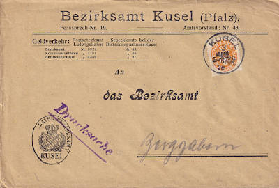 Inlandsdrucksache (1-50 g) vom 03.08.1920 (5. Periode) frankiert mit einer Marke a 10 Pfennig (=10 Pfennig)
