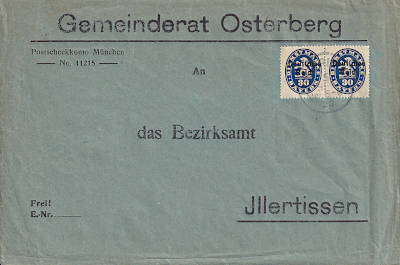 Inlandsbrief (21-250 g) vom 05.09.1920 (5. Periode) frankiert mit 2 Marken a 30 Pfennig (=60 Pfennig) |