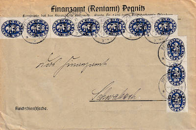Inlandsbrief (1-20 g) vom 17.07.1922 (8. Periode) frankiert mit 10 Marken a 30 Pfennig (=3 Mark) |