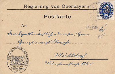 Inlandspostkarte vom 30.07.1920 (5. Periode) frankiert mit einer Marke a 30 Pfennig (=30 Pfennig) |