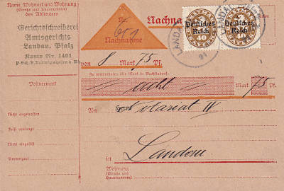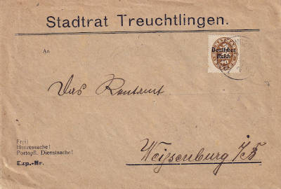 Ortsbrief (1-20 g) vom 24.12.1920 (5. Periode) frankiert mit einer Marke a 40 Pfennig (=40 Pfennig) |