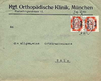 Inlandsbrief (1-20 g) vom 04.09.1922 (8. Periode) frankiert mit 2 Marken a 1½ Mark (=3 Mark)