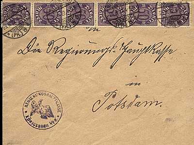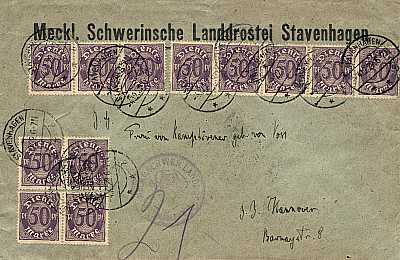 Inlandsbrief (1-20 g) vom 19.06.1922 (7. Periode) frankiert mit 4 Marken a 50 Pfennig (=2 Mark) |
