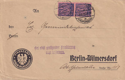 Ortsbrief (1-20 g) vom 03.03.1923 (13. Periode) frankiert mit 2 Marken a 20 Mark (=40 Mark) |