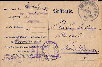 Ortspostkarte vom 14.04.1923 (13. Periode) frankiert mit einer Marke a 20 Mark (=20 Mark) |