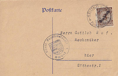 Ortspostkarte vom 12.05.1924 (27. Periode) frankiert mit einer Marke a 3 Pfennig (=3 Pfennig)