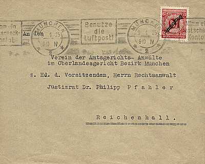 Inlandsbrief (1-20 g) vom 09.01.1925 (27. Periode) frankiert mit einer Marke a 10 Pfennig (=10 Pfennig)