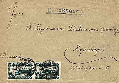 Auslandsdrucksache (1-50 g) vom 21.04.1922 (7. Periode) frankiert mit 2 Marken a 40 Pfennig (=80 Pfennig)