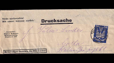 Inlandsdrucksache (26-50 g) vom 14.12.1922 (10. Periode) frankiert mit einer Marke a 3 Mark (=3 Mark)
