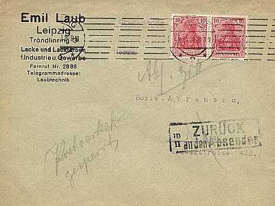 Ortsbrief (1-20 g) vom 25.09.1919 (3. Periode) frankiert mit einer Marke a 10 Pfennig (=10 Pfennig) |