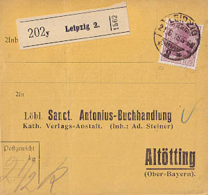 Inlandspaketkarte (2 500 g, > 75 km) vom 21.06.1918 (2. Periode) frankiert mit einer Marke a 60 Pfennig (=60 Pfennig) |