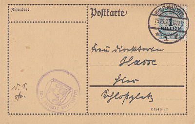 Ortspostkarte vom 15.10.1923 (20. Periode) frankiert mit einer Marke a 1 Million Mark (=1 Million Mark) |