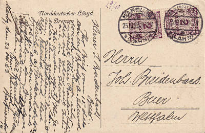 Inlandspostkarte vom 23.10.1923 (21. Periode) frankiert mit 2 Marken a 2 Millionen Mark (=4 Millionen Mark)