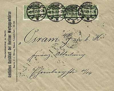 Ortsbrief (1-20 g) vom 29.10.1923 (21. Periode) frankiert mit einer Marke a 4 Millionen Mark (=4 Millionen Mark) |