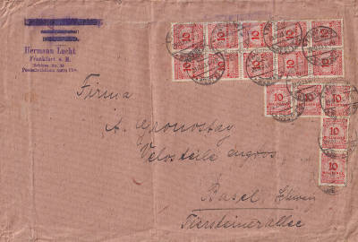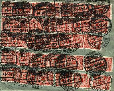 Auslandsbrief (481-500 g) vom 25.10.1923 (21. Periode) frankiert mit 39 Marken a 10 Millionen Mark (=390 Millionen Mark) |