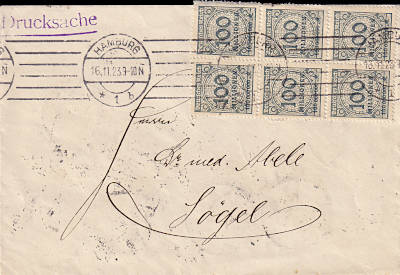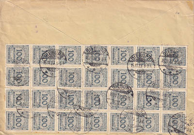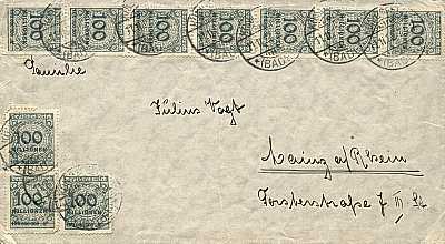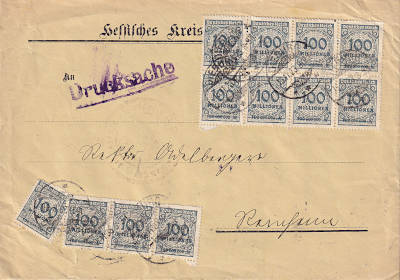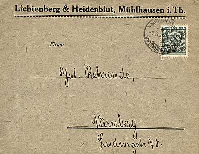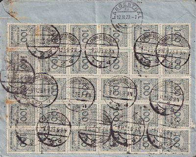 Inlandsbrief (1-20 g) vom 02.11.1923 (22. Periode) frankiert mit einer Marke a 100 Millionen Mark (=100 Millionen Mark) |
