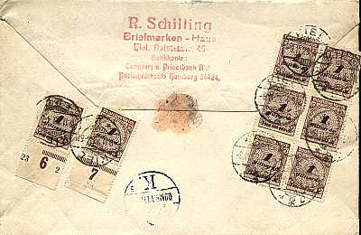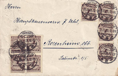 Ortsbrief (21-100 g) vom 15.11.1923 (24. Periode) frankiert mit 6 Marken a 1 Milliarde Mark (=6 Milliarden Mark) |