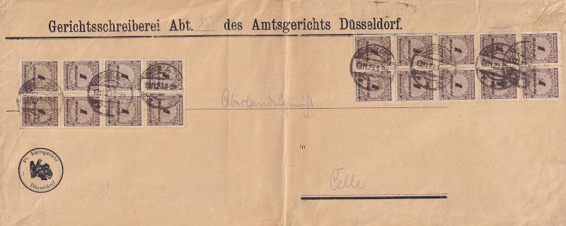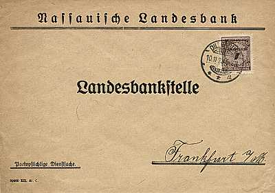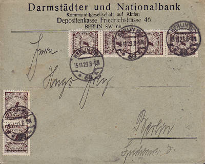 Inlandsbrief (1-20 g) vom 08.11.1923 (23. Periode) frankiert mit einer Marke a 1 Milliarde Mark (=1 Milliarde Mark) |