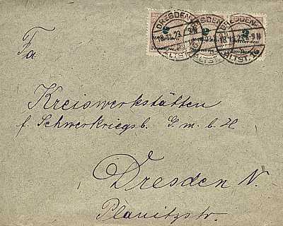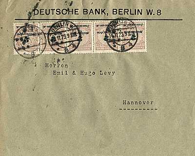Inlandsbrief (1-20 g) vom 14.11.1923 (24. Periode) frankiert mit 5 Marken a 2 Milliarden Mark (=10 Milliarden Mark) |