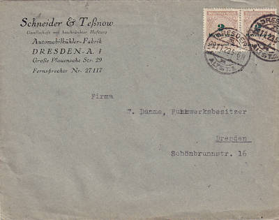 Inlandsdrucksache (1-25 g) vom 22.11.1923 (25. Periode) frankiert mit 2 Marken a 2 Milliarden Mark (=4 Milliarden Mark) |