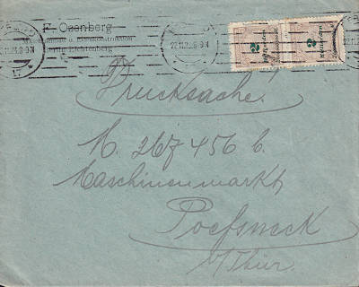 Inlandsdrucksache (1-50 g) vom 07.12.1923 (27. Periode) frankiert mit 15 Marken a 2 Milliarden Mark (=30 Milliarden Mark) |