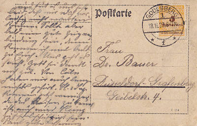 Inlandspostkarte vom 18.11.1923 (24. Periode) frankiert mit einer Marke a 5 Milliarden Mark (=5 Milliarden Mark) |