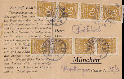 Ortspostkarte vom 24.09.1923 (18. Periode) frankiert mit einer Marke a 50 000 Mark (=50 000 Mark) |