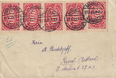 Ortsbrief (1-20 g) vom 02.08.1923 (15. Periode) frankiert mit 2 Marken a 200 Mark (=400 Mark) |