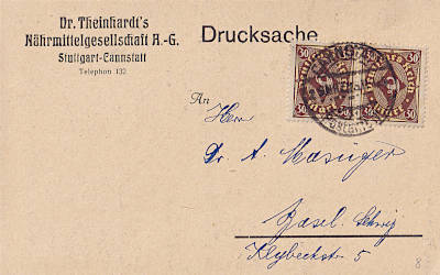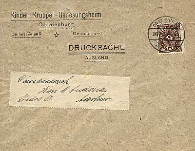 Auslandsdrucksache (1-50 g) vom 26.02.1923 (12. Periode) frankiert mit einer Marke a 30 Mark (=30 Mark) |