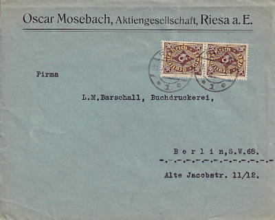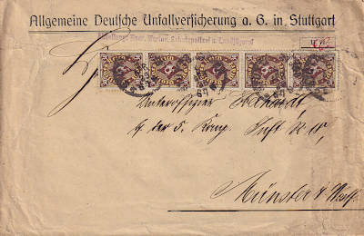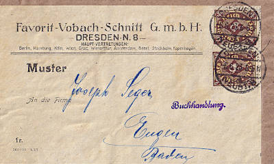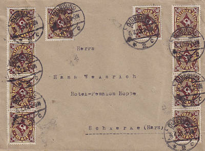 Inlandsbrief (1-20 g) vom 05.07.1923 (14. Periode) frankiert mit 10 Marken a 30 Mark (=300 Mark) |
