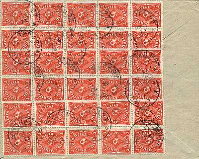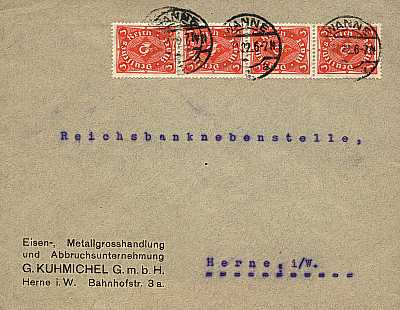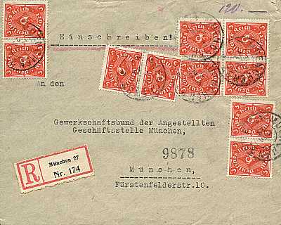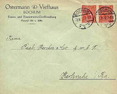 Inlandsbrief (1-20 g) vom 03.10.1922 (9. Periode) frankiert mit 2 Marken a 3 Mark (=6 Mark) |