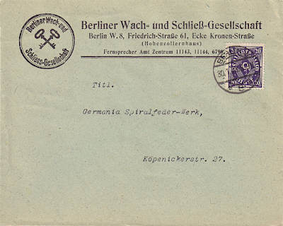 Ortsbrief (1-20 g) vom 30.01.1923 (12. Periode) frankiert mit einer Marke a 20 Mark (=20 Mark) |