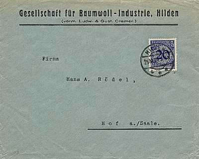 Inlandsbrief (21-500 g) vom 25.12.1924 (27. Periode) frankiert mit einer Marke a 20 Pfennig (=20 Pfennig)