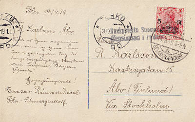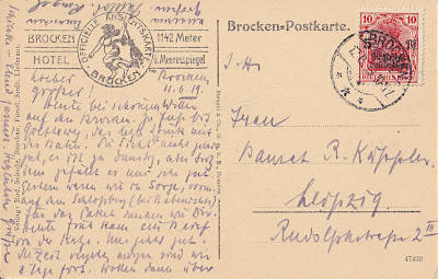 Auslandspostkarte vom 14.09.1919 (3. Periode) frankiert mit einer Marke a 10 Pfennig (=10 Pfennig)