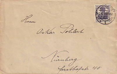Inlandsbrief (1-20 g) vom 02.06.1919 (3. Periode) frankiert mit einer Marke a 15 Pfennig (=15 Pfennig) |
