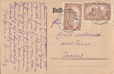 Inlandspostkarte vom 11.11.1922 (9. Periode) frankiert mit 2 Marken a 1,50 Mark (=3 Mark) |